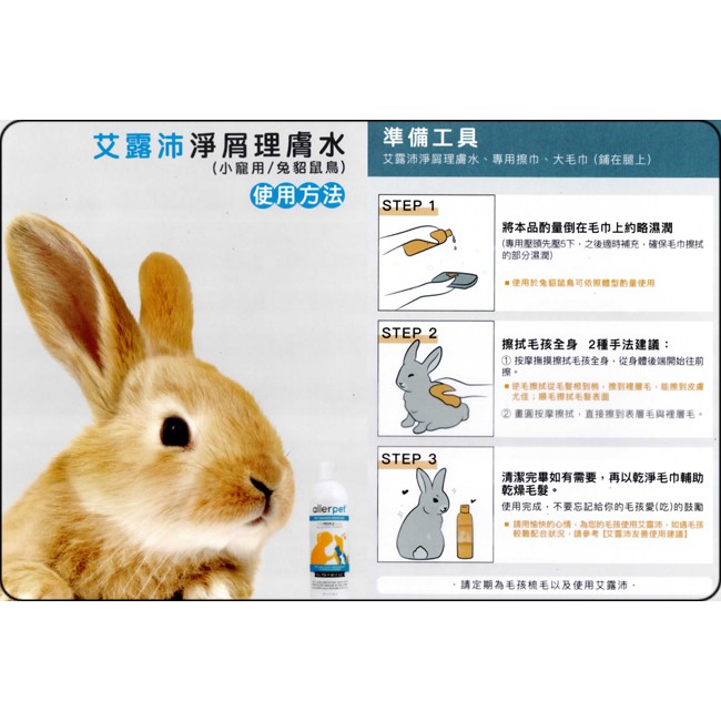 美國艾露沛小寵用淨屑理膚水(兔貂鼠鳥)【單瓶/套組】針對飼主過敏改善 清潔皮屑 寵物乾洗澡