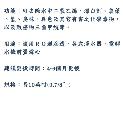 美國進口【T33 OCB934】 顆粒活性碳濾心|10英吋標準規格|RO逆滲透濾芯