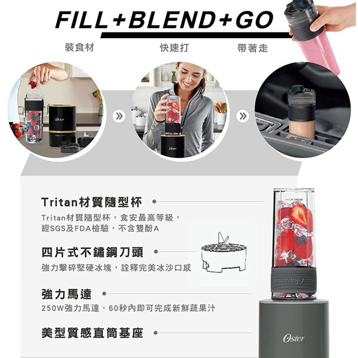 美國 OSTER ( BLST120 ) Blend Active 隨我型果汁機 - 能量黑【1機2杯特恵組-限量下殺】