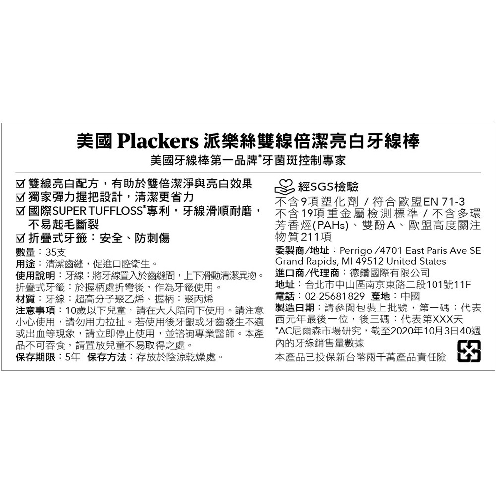 美國 Plackers派樂絲 雙線倍潔亮白牙線棒【何藥局新一代藥妝連鎖】