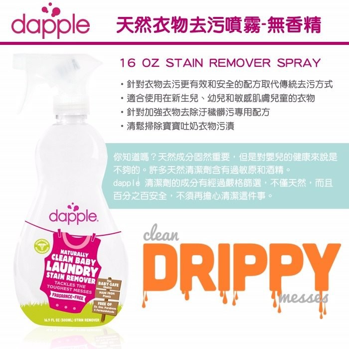 美國Dapple 衣物去污噴霧-無香精500ML【安琪兒婦嬰百貨】