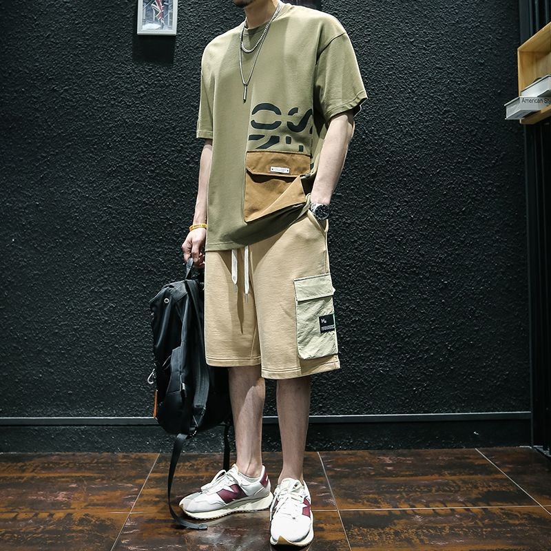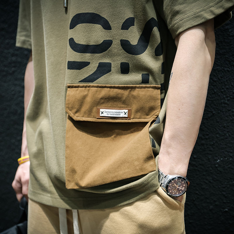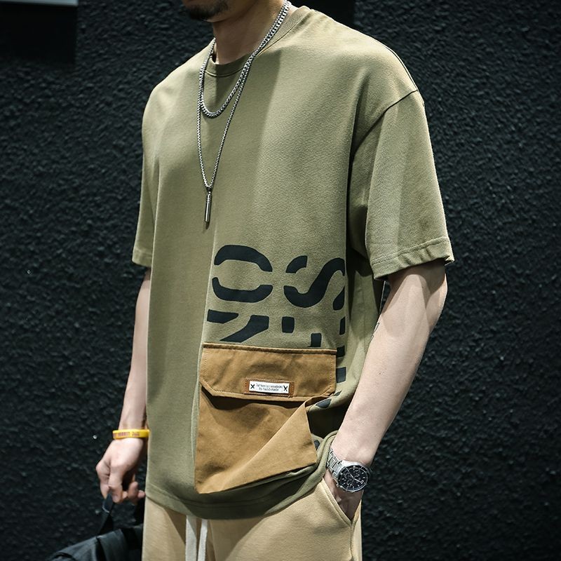 美式復古個性休閒短袖t恤男夏季大碼寬鬆痞帥氣質運動工裝上衣潮
