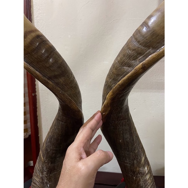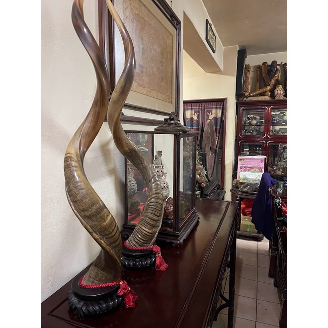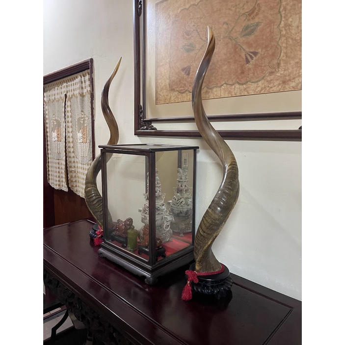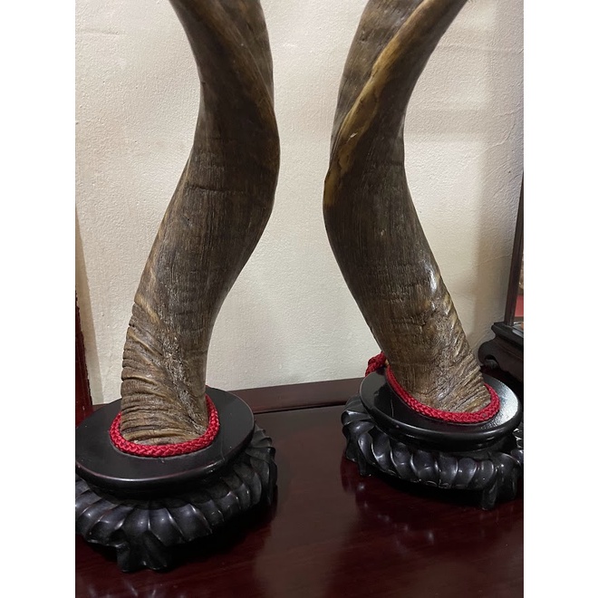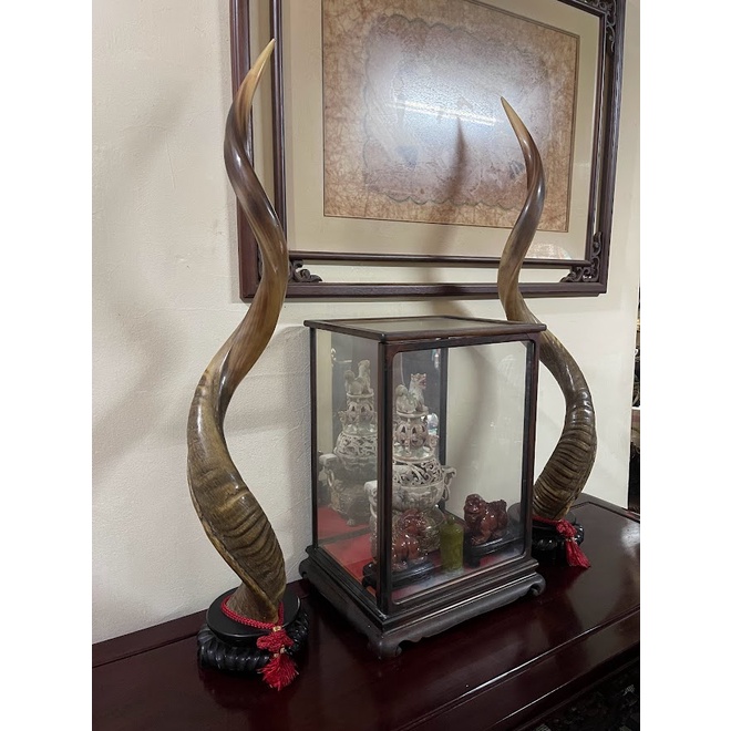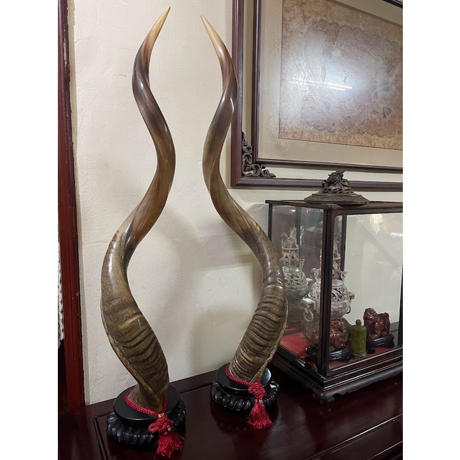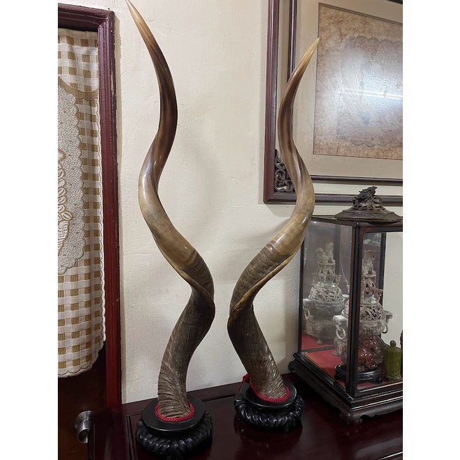 貴賓lin0917588已購/請勿下單/羚羊角一對兩隻極品(含座)高93公分/早期收藏/風水上招財制煞的利器/羚羊角已愈