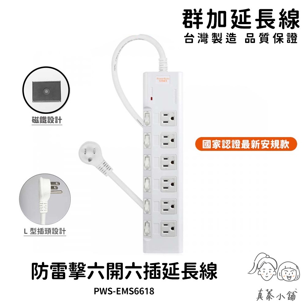 群加延長線 六開6插 高耐燃尿素 磁鐵固定插座 實驗室等級尿素材質適用電氣用品-PWS-EMS6618-1.8m-台灣製