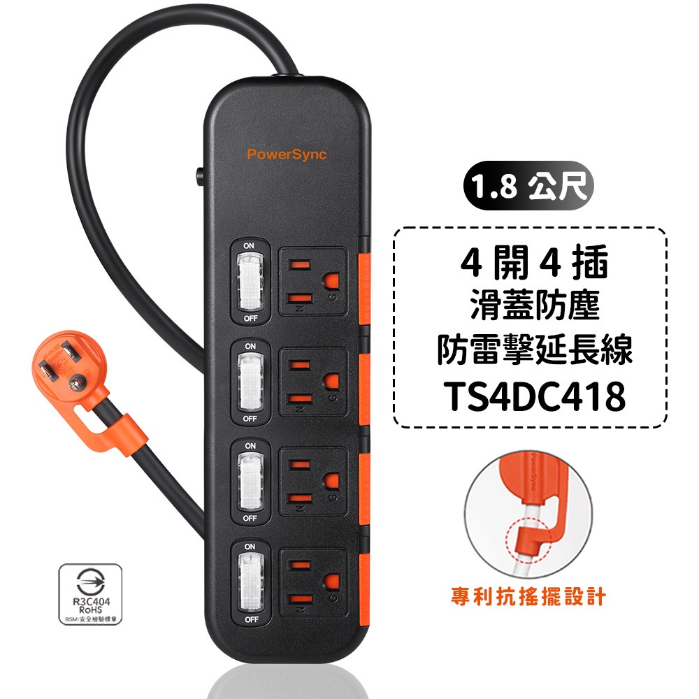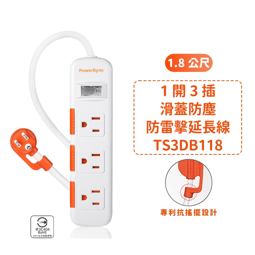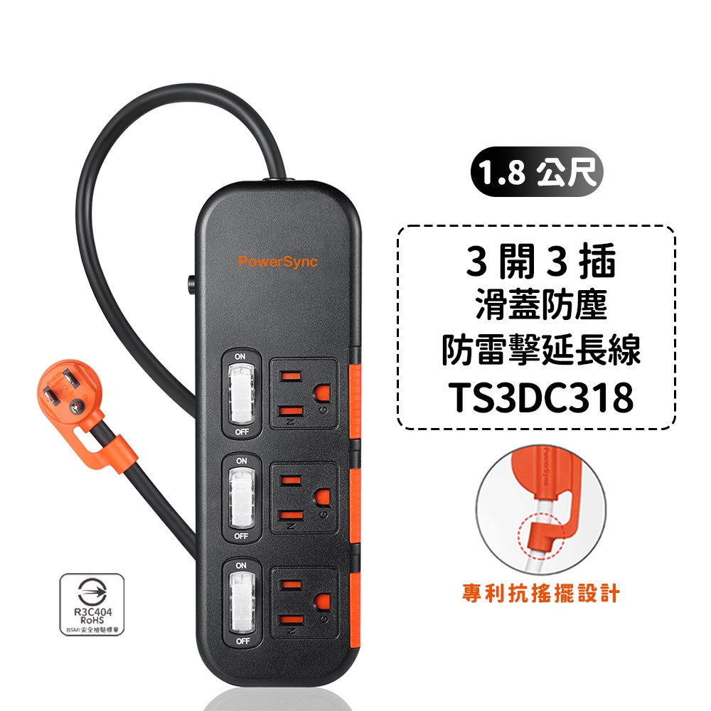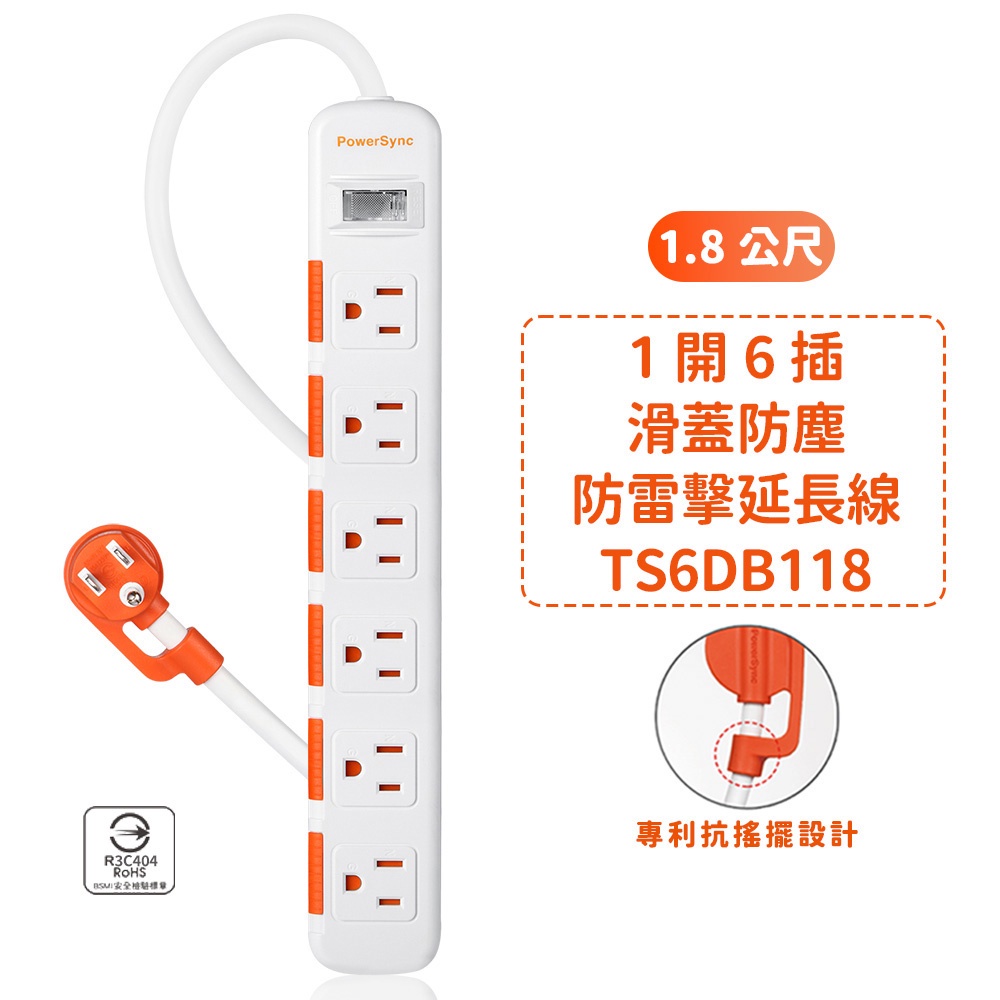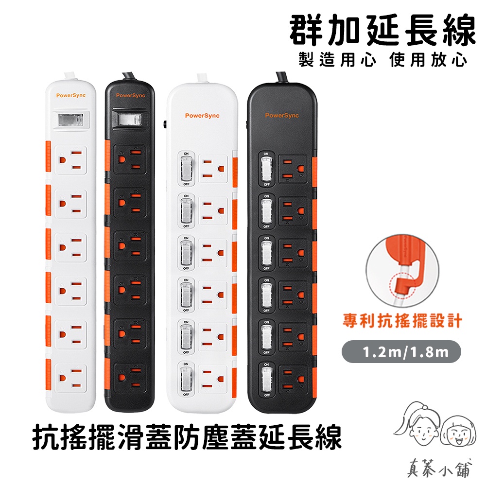 群加延長線 3P 一開多插 滑蓋防塵保護插座延長線 過載保護開關 防雷擊延長線裝置 適用電氣用品壁插延長線插座-1.8m