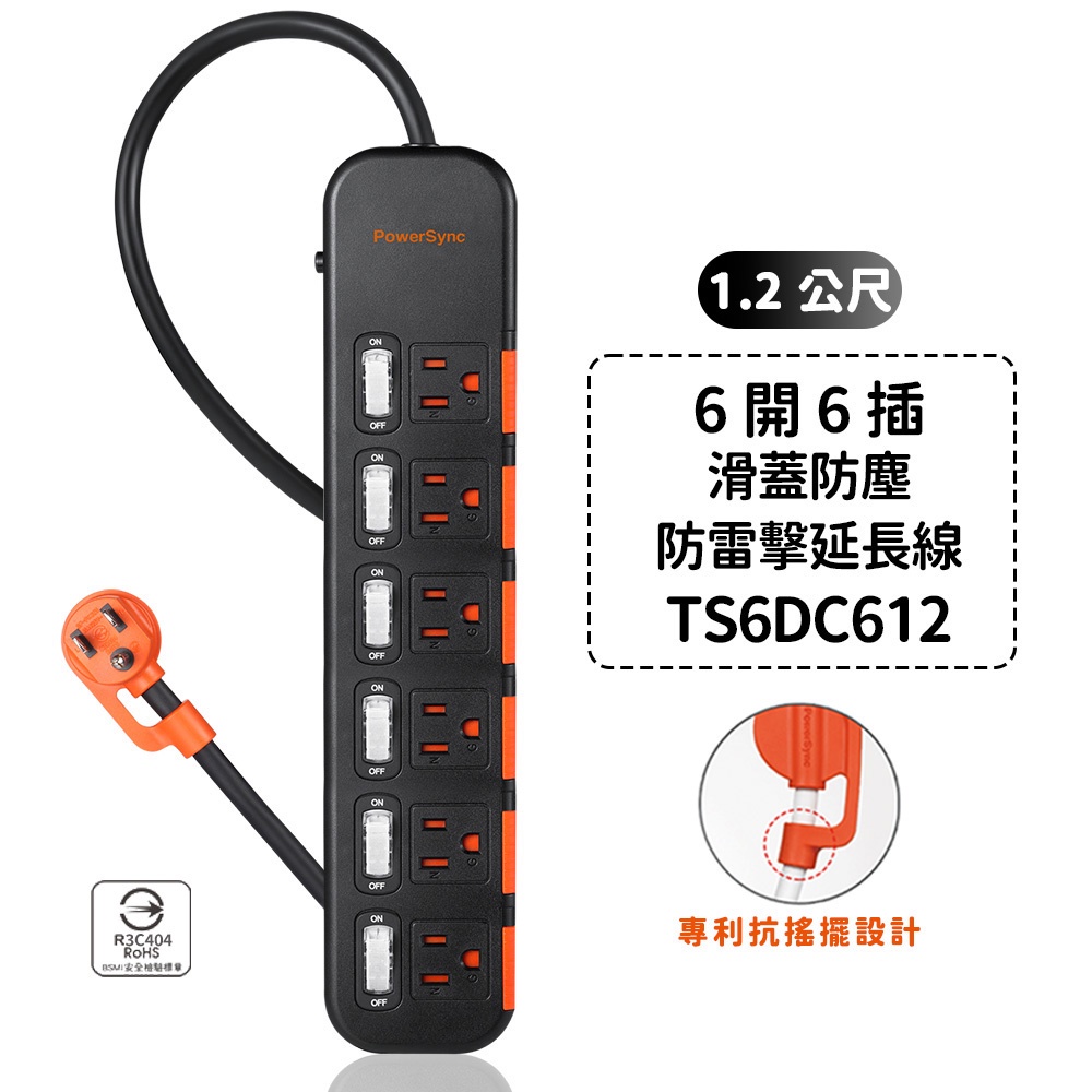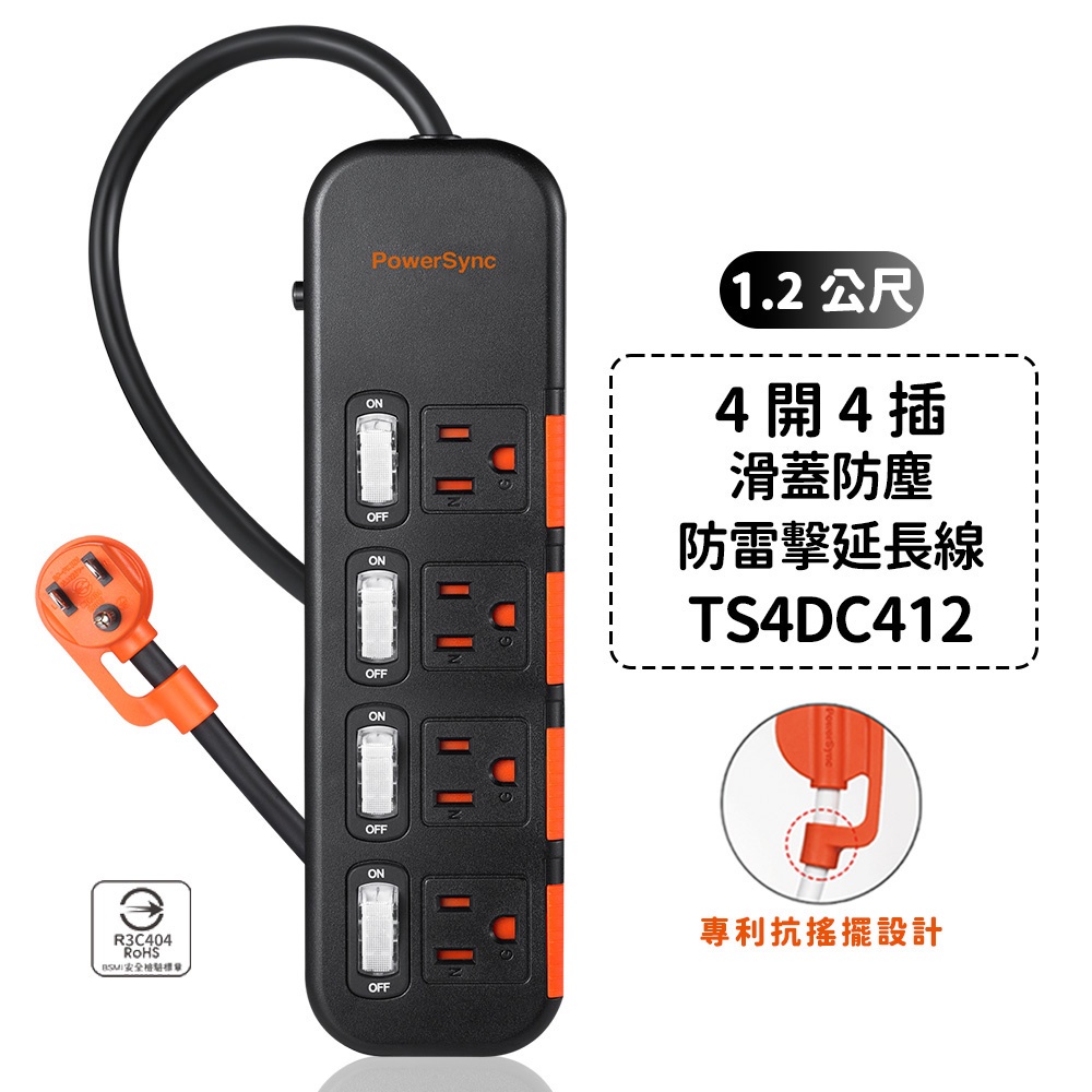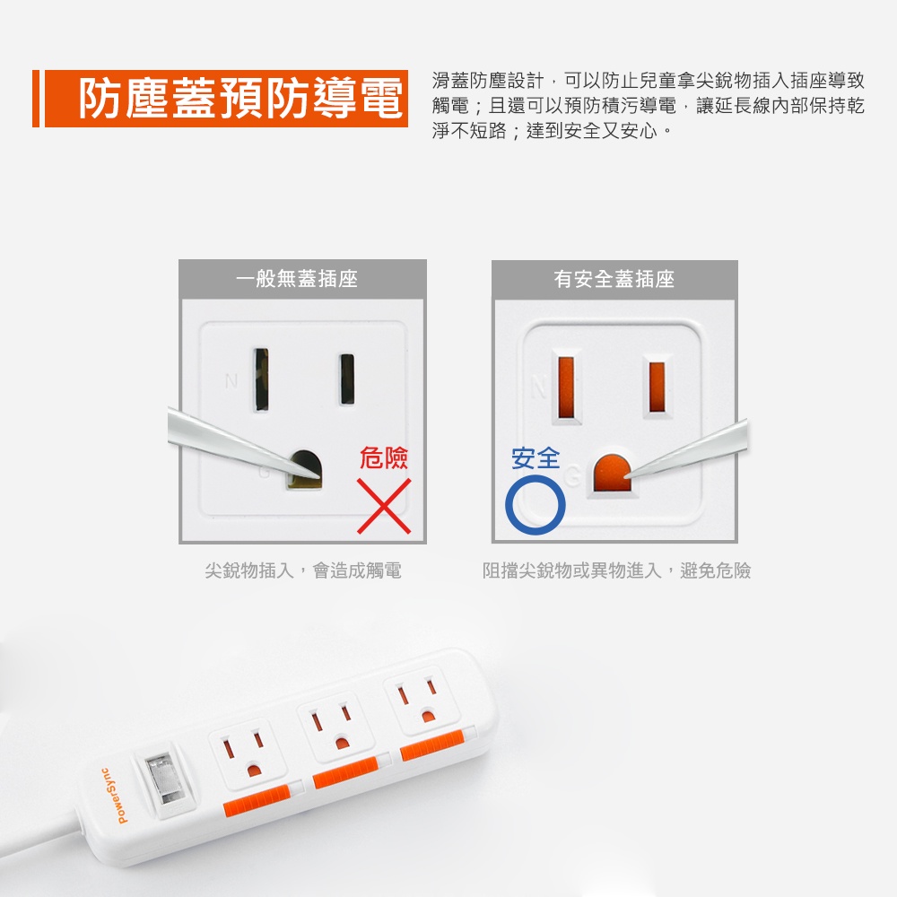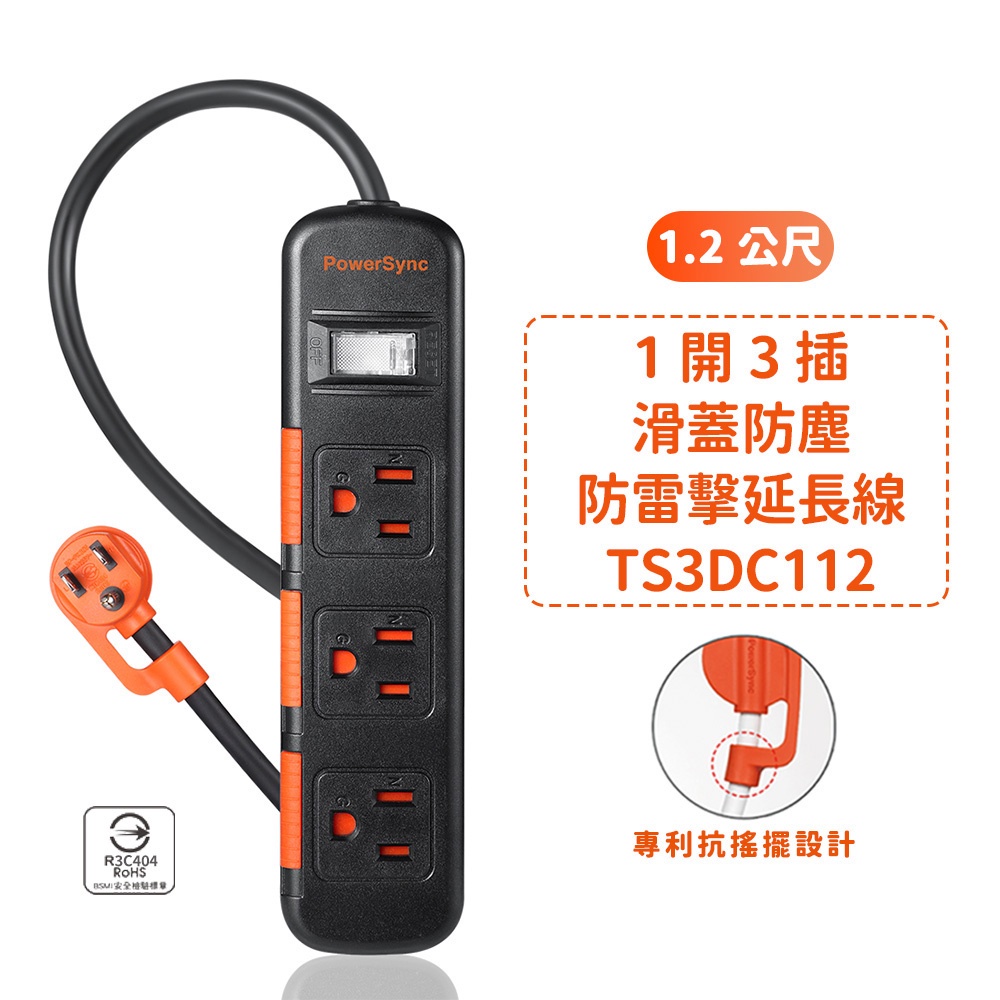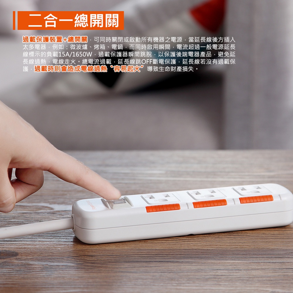 群加延長線 3P 一開多插 滑蓋防塵保護插座延長線 過載保護開關 防雷擊延長線裝置 適用電氣用品壁插延長線插座-1.8m