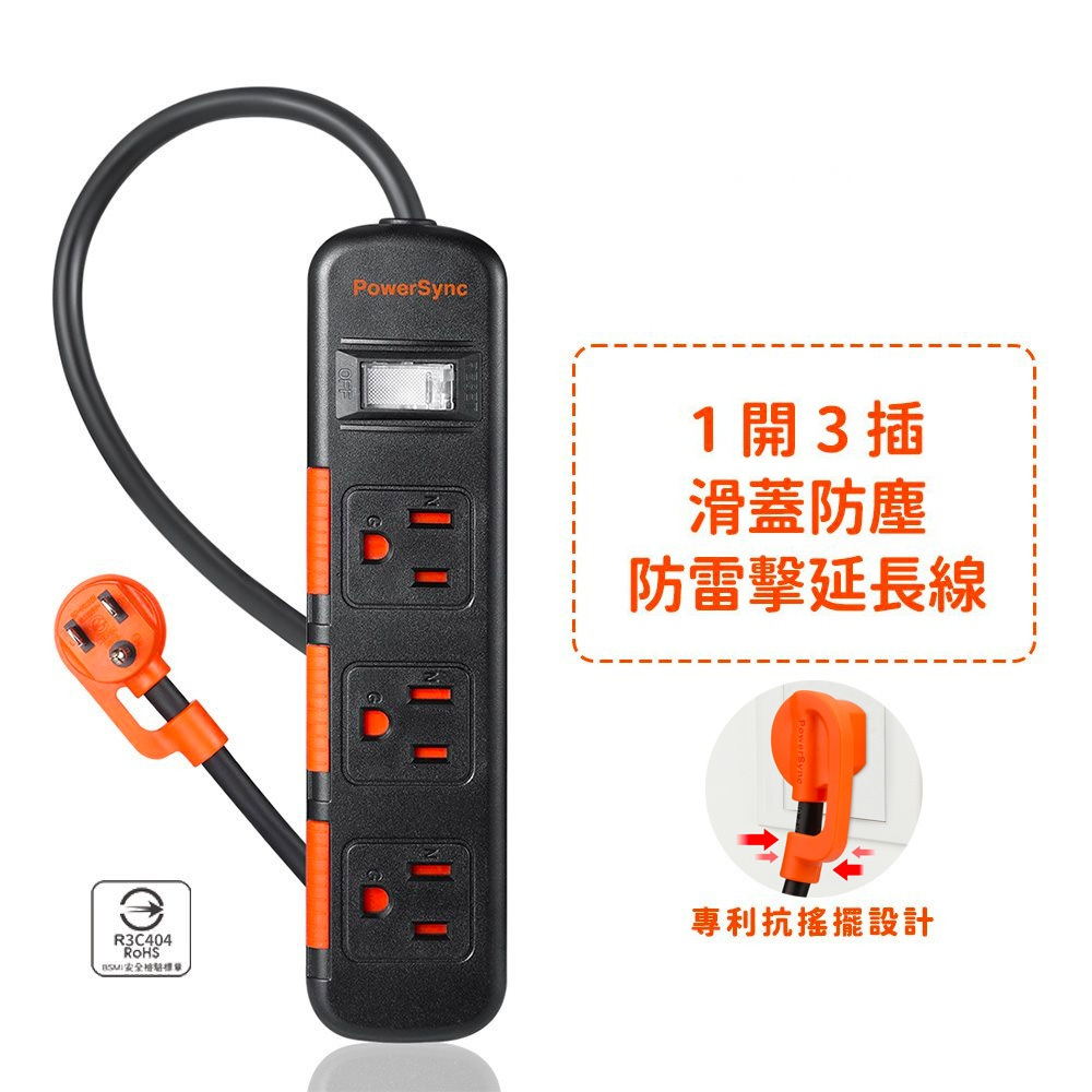 群加延長線 3P一開3插/4插/6插 滑蓋防塵蓋 過載保護裝置 抗搖擺插頭-白/黑