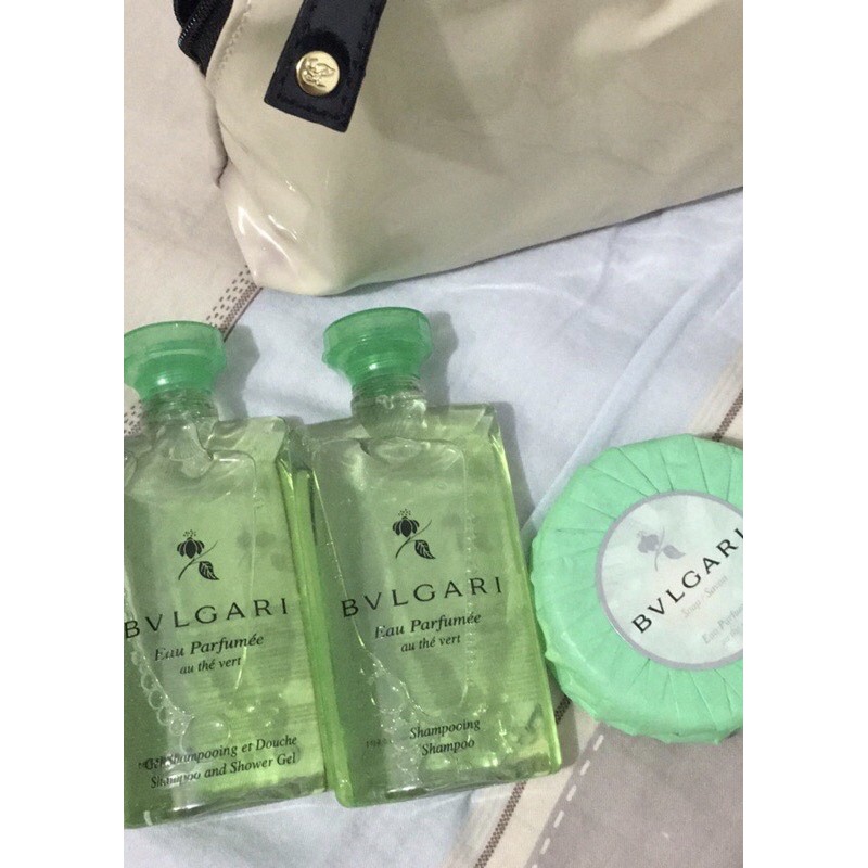 義大利寶格麗BVLGARI Bulgari高級飯店沐浴組 綠茶 洗髮乳沐浴乳香皂化妝包