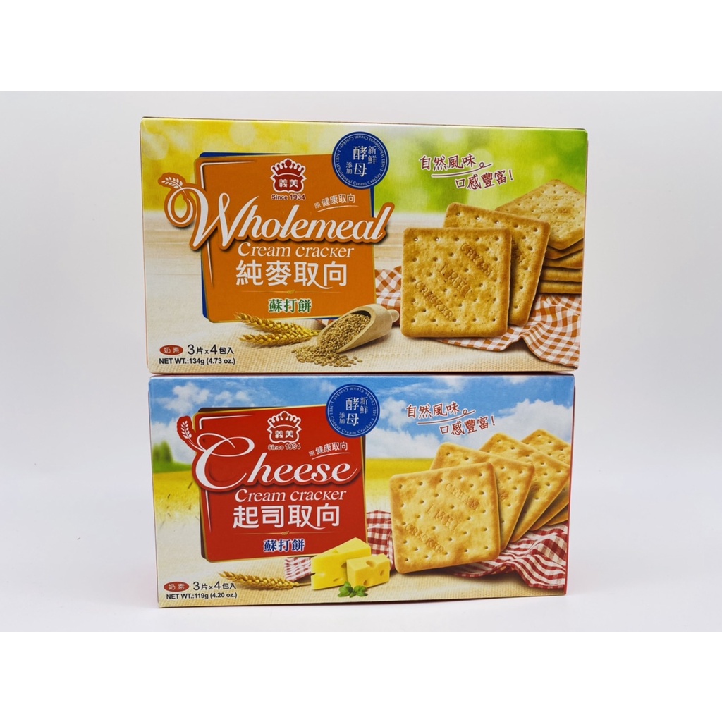 義美 純麥取向蘇打餅乾/起司取向蘇打餅乾3片x4包入(奶素)