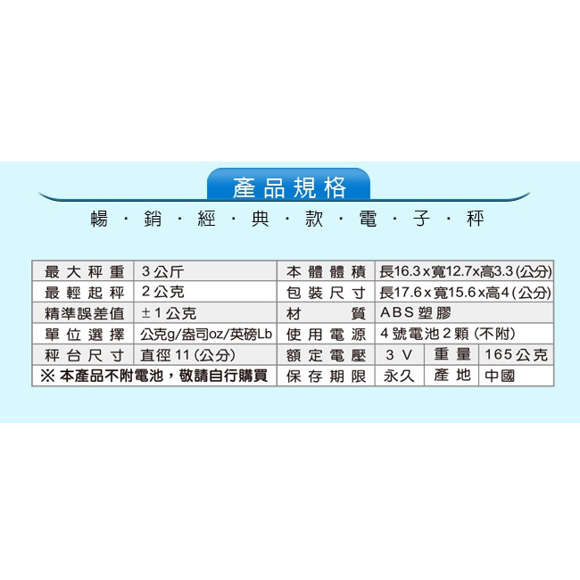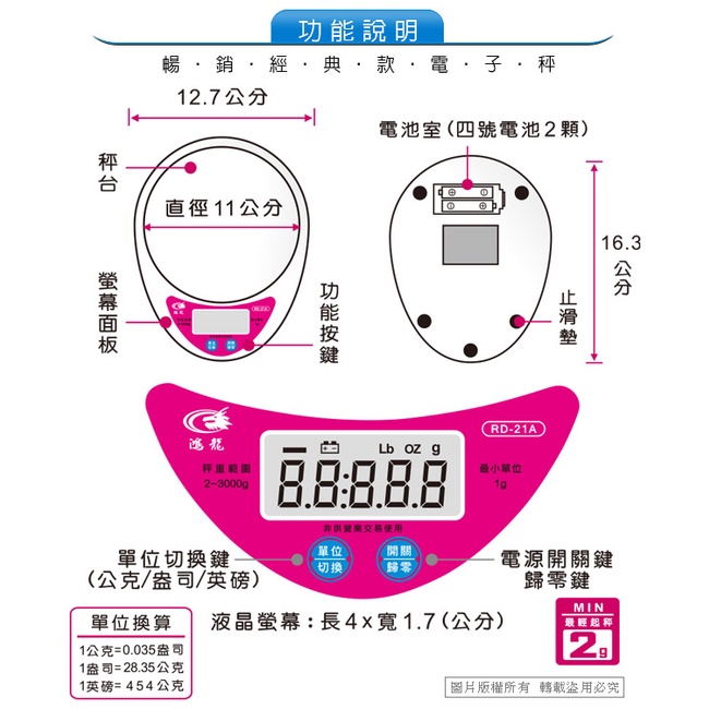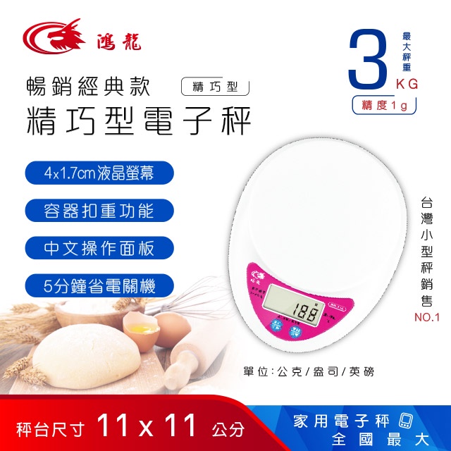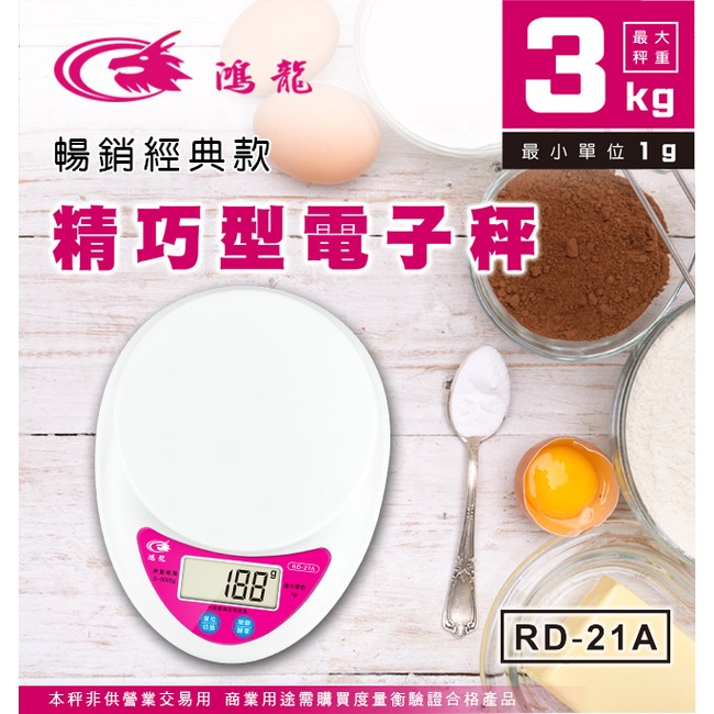 聖岡 鴻龍 精巧型 電子秤 RD-21A 3kg 磅秤 烘培秤 料理秤 廚房秤