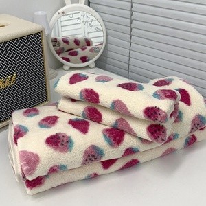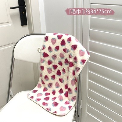 聚可愛【毛巾+浴巾】可愛草莓印花洗臉巾 浴室洗澡大毛巾 ins水果乾發浴巾 家用可穿可裹珊瑚絨浴巾女