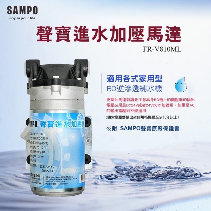 聲寶《SAMPO》家用型RO逆滲透馬達《FR-V810ML》保固兩年 - 水易購桃園介壽店
