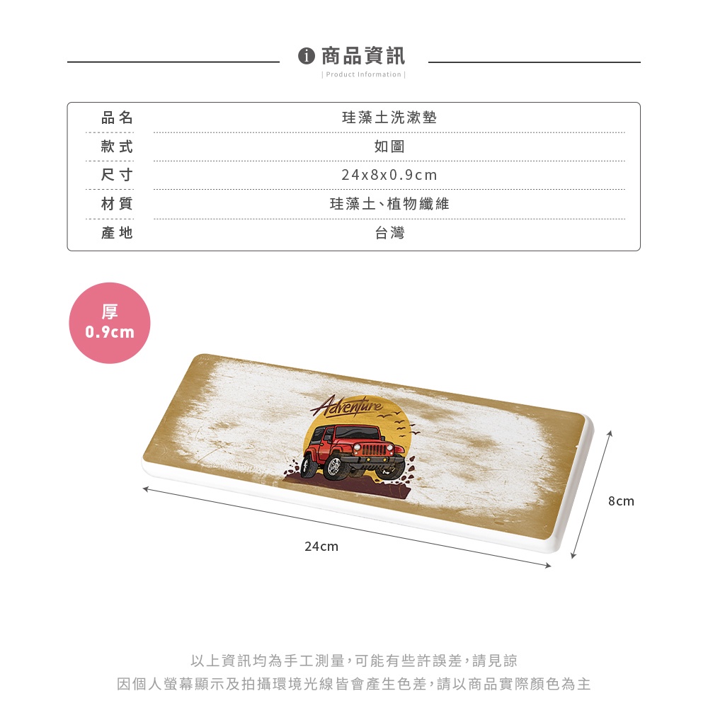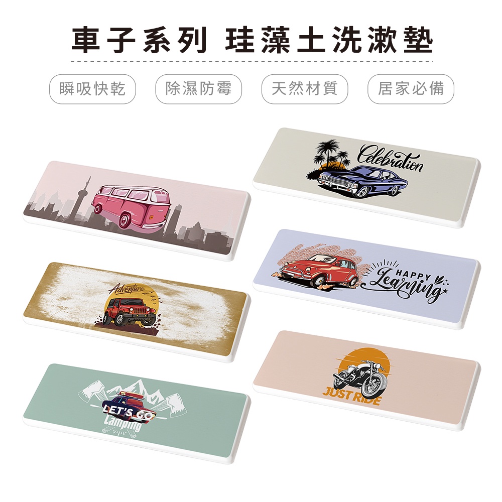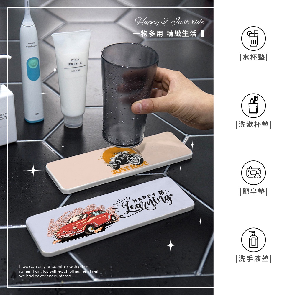 自創車子系列 硬式珪藻土洗漱墊 24*8*0.9 吸水杯墊 SGS檢驗不含石綿 多種款式任選【5ip8】FM4066