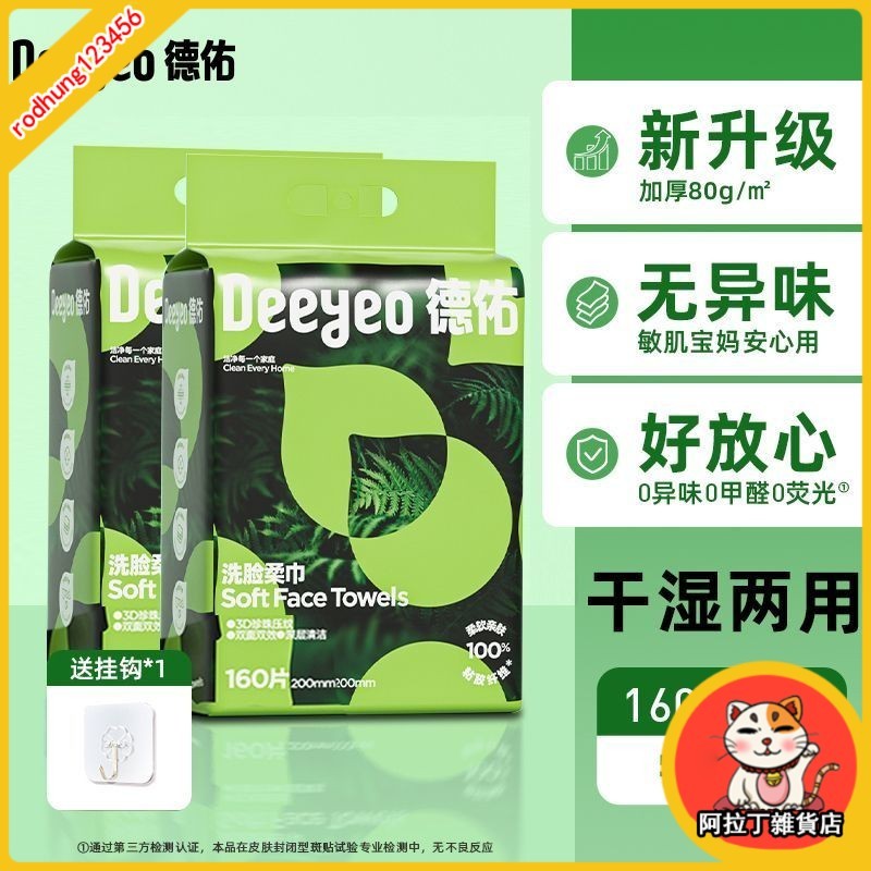 臺灣出貨 德佑洗臉巾懸掛式大包加厚潔麵巾加大抽取式幹濕兩用不掉毛擦臉巾 IVLQ