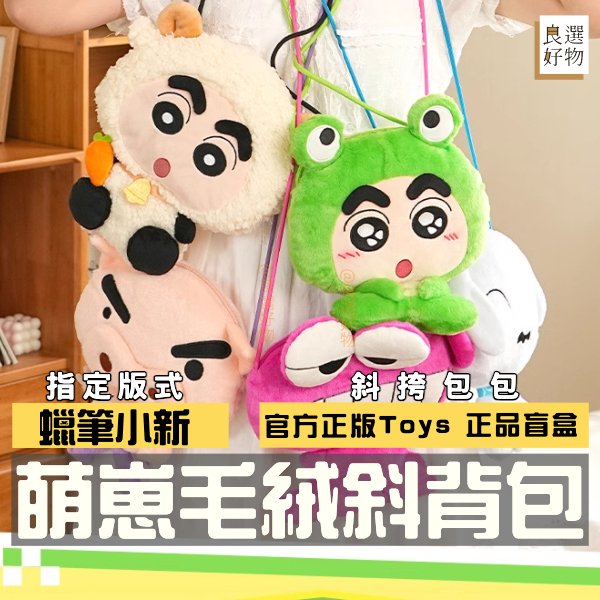 良選好物【現貨/免運】蠟筆小新 萌崽毛絨斜挎包系列 零錢包 包包 毛絨公仔 盲盒 鱷魚山 小白 左衛門 隱藏