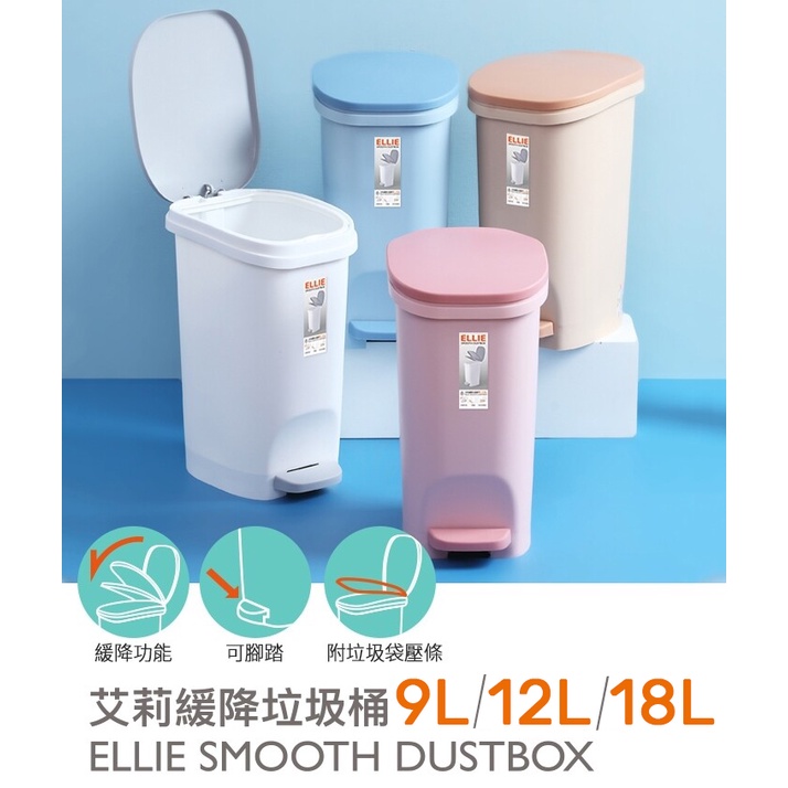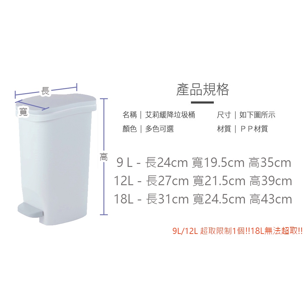 艾莉緩降垃圾桶 踏式垃圾桶 掀蓋式垃圾桶 9L/12L/18L 附壓條 紙林 垃圾桶 防臭防蟲【315百貨】