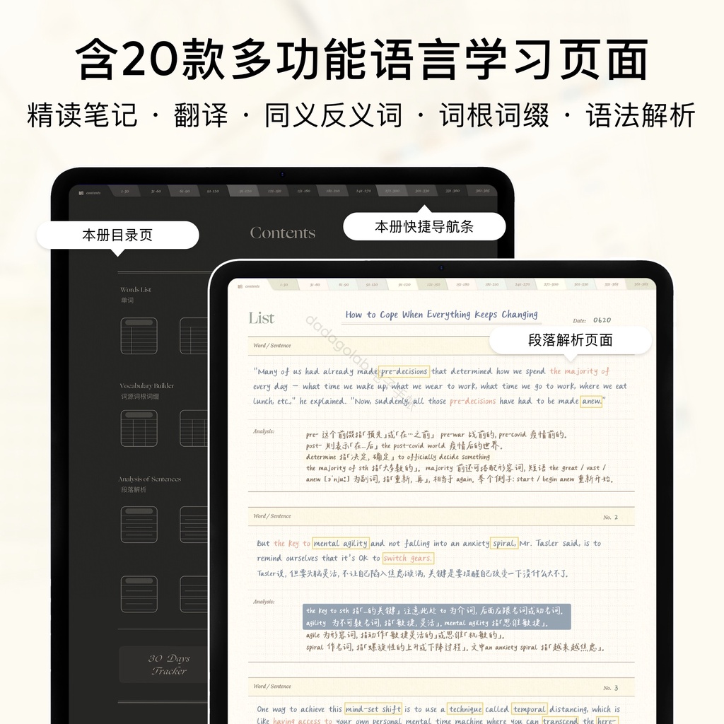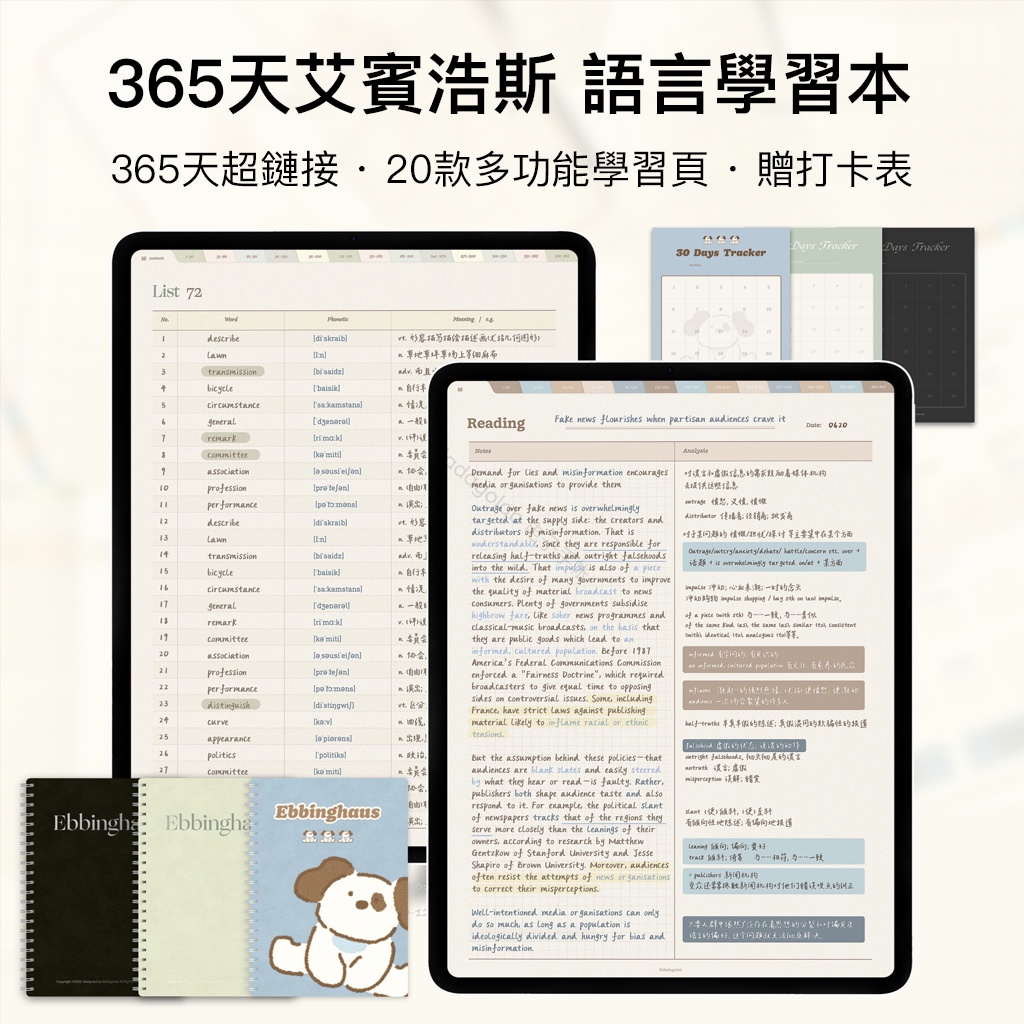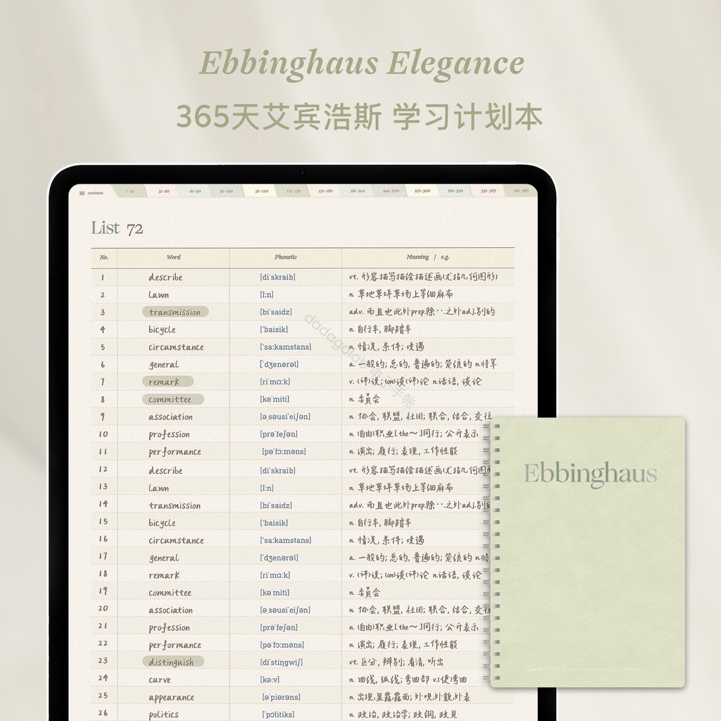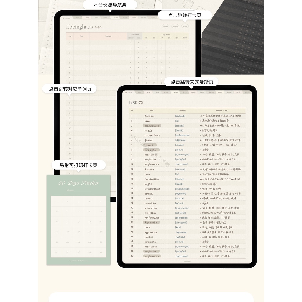 艾賓浩斯單詞365天精讀筆記語言學習本iPad電子手帳模板Goodnotes & Notability