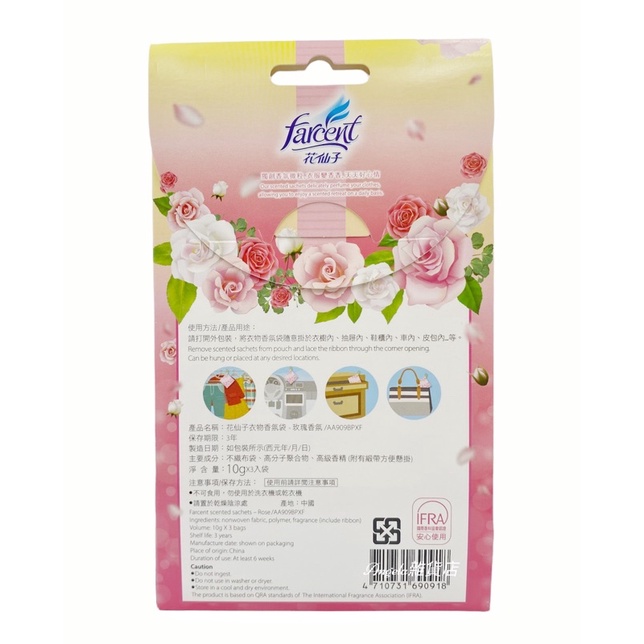 花仙子衣物香氛袋小蒼蘭/鼠尾草海鹽 粉戀櫻花 玫瑰 晨露香氛 衣物芳香袋 10g*3入
