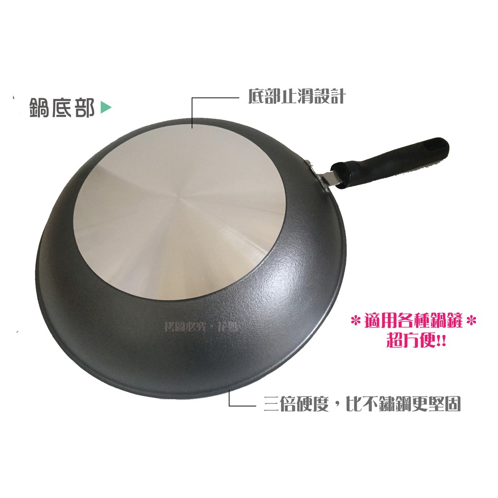 花媽 台灣製手工鑄造 鐵鏟專用不沾深型炒鍋 30CM(單把)