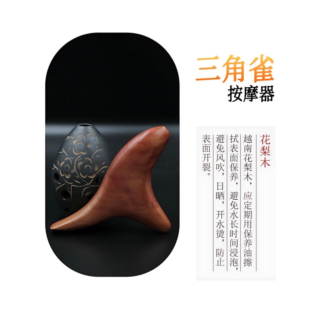 花梨木三角雀按摩器 木頭按摩梳 頭部肩頸手部腿部穴位刺激拉提運動舒緩按摩用品器具 按摩器 按摩棒 16529