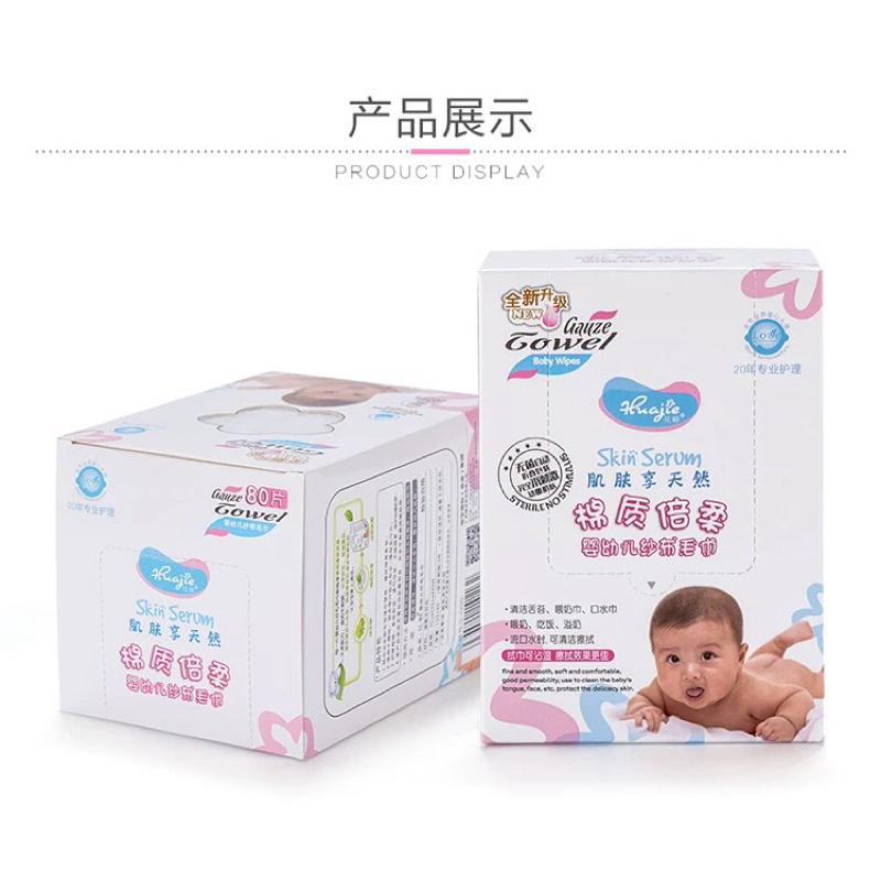 花節80片嬰兒一次性紗布毛巾棉柔口水巾洗臉巾寶寶方巾乾濕兩用巾
