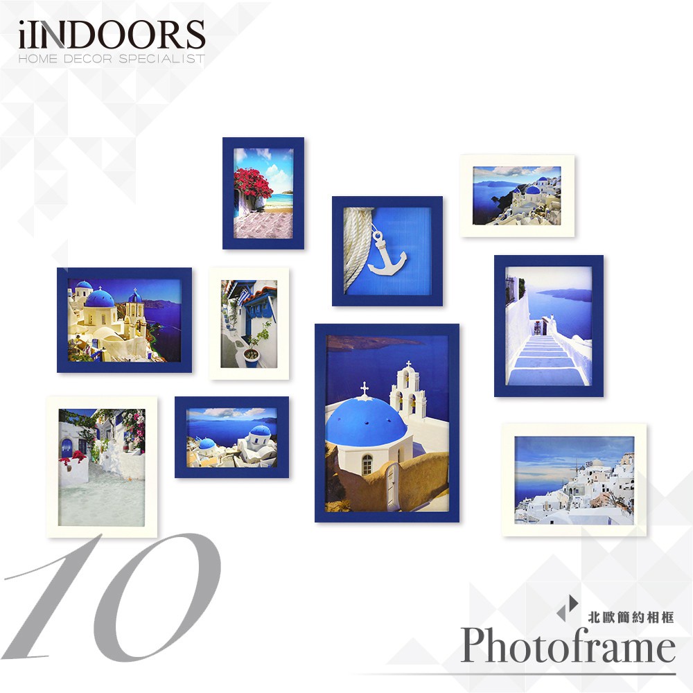英倫家居 現貨 北歐簡約相框牆 藍+白色10入組合 送圖卡+科技黏土 實木畫框 照片牆 相片牆 設計 居家創意佈置