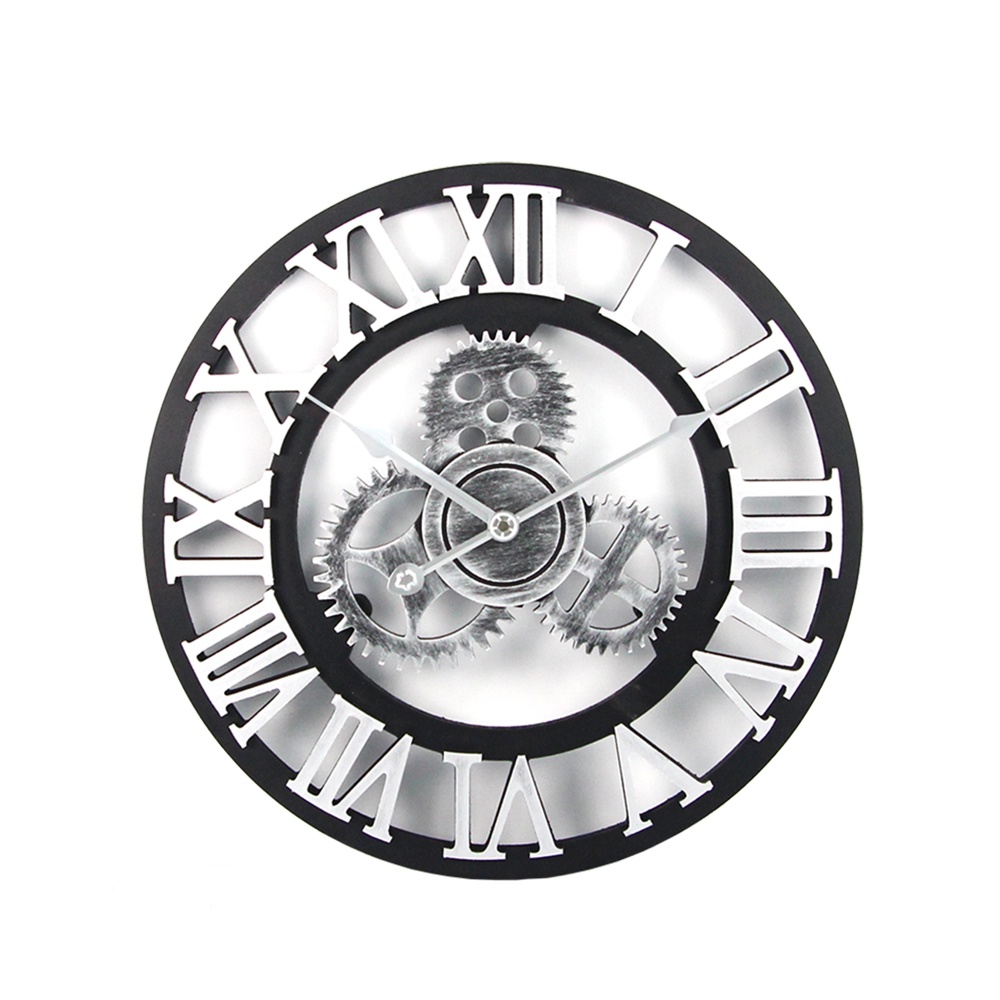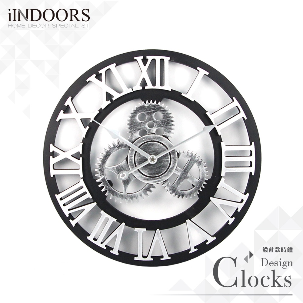 英倫家居 銀色齒輪掛鐘 直徑40cm 北歐工業風時鐘 台製靜音機芯 Loft 仿舊鏤空 羅馬數字 復古木質鐘 壁鐘