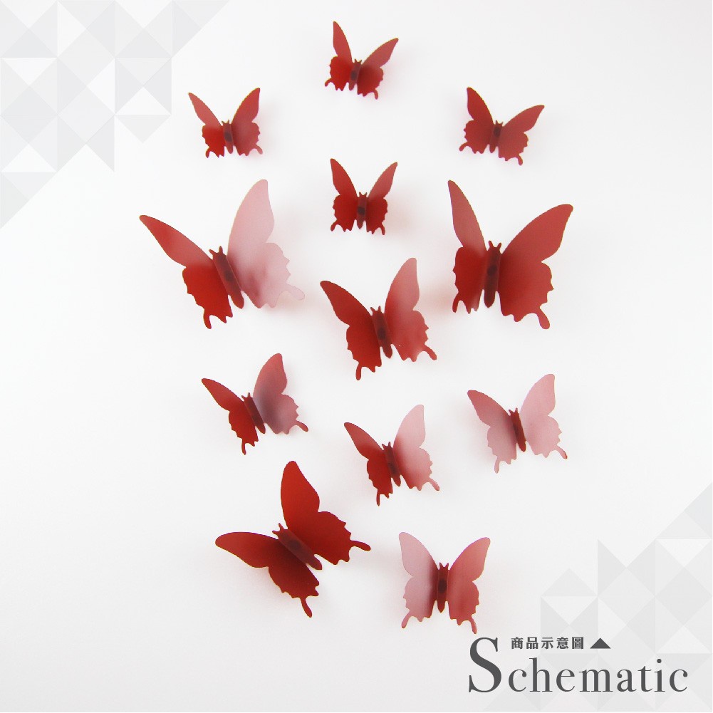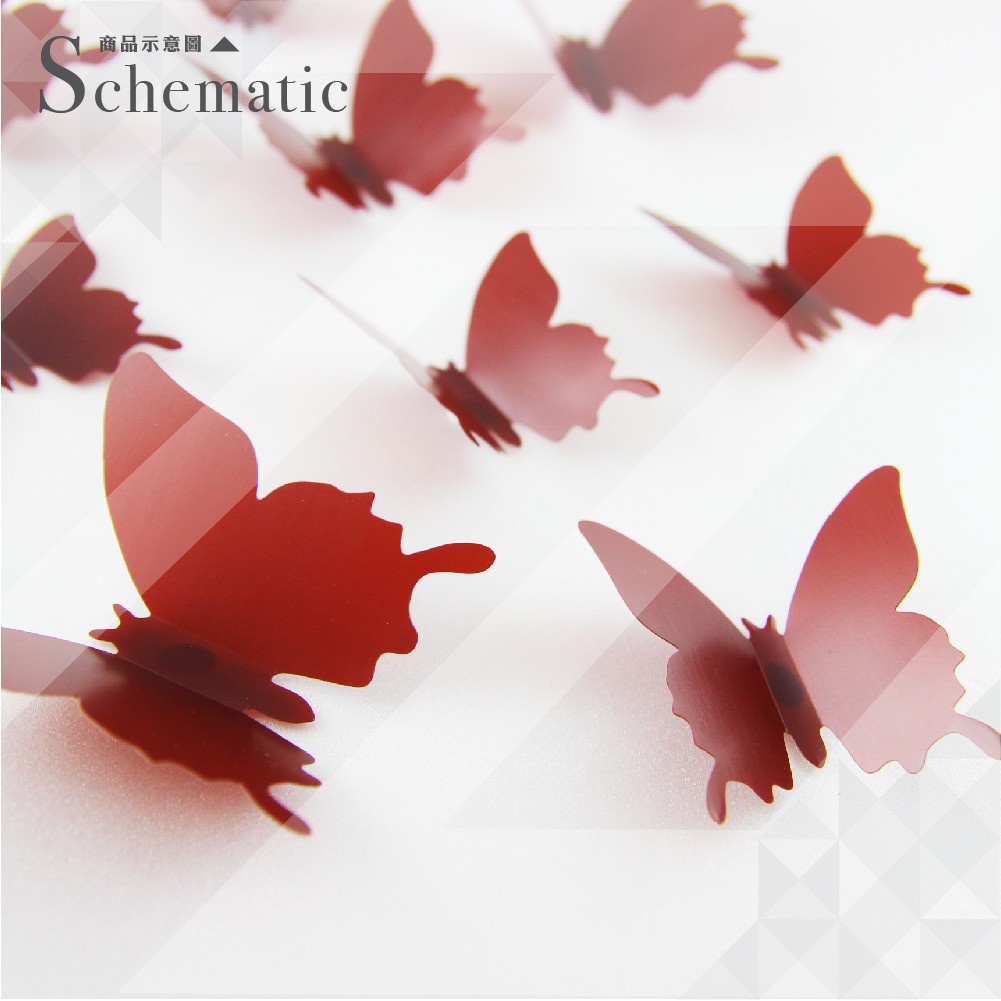 英倫家居 3D迷人蝴蝶 咖啡色 12入組 立體壁貼 室內設計 婚禮 展覽 布置 創意 小物 裝潢 飾品 時尚裝飾