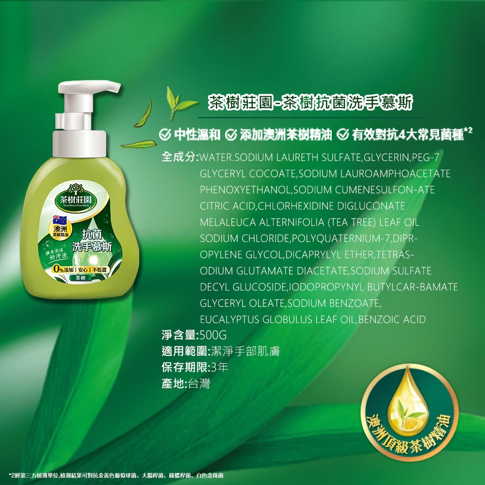 茶樹莊園 抗菌洗手慕斯 洗手慕絲 補充瓶 茶樹抗菌洗手慕斯 500g 賣場未滿$99不出貨