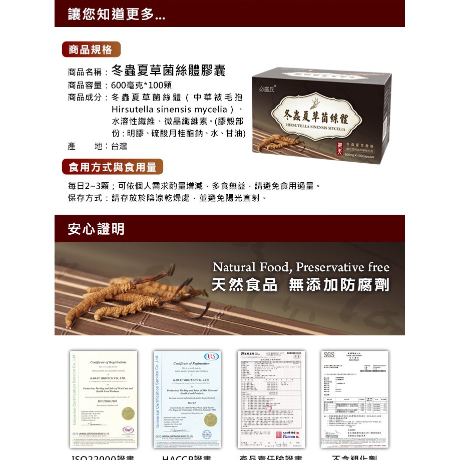 草本之家 冬蟲夏草菌絲體(100粒/盒)中華被毛孢 滋補強身 增強體力 銀髮 病後調養 男性 保健食品 營養品