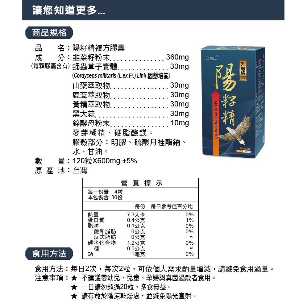 草本之家 陽籽精(120粒/瓶) 韭菜籽 起陽籽 蛹蟲草 北蟲草 黃精 鹿茸 鋅 強壯 男性 增強體力 保健食品