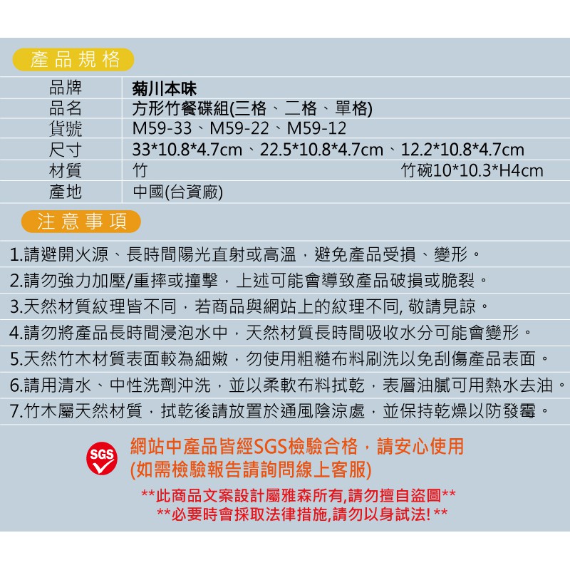 菊川本味 / 方形竹餐碟組 / M59 竹盤 竹碟 竹碗 木盤 木碟 木碗 餐桌 竹餐具 天然餐具【雅森】
