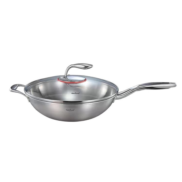菲仕朗fosslang炒鍋32cm 30CM18/10不銹鋼炒鍋少油煙炒菜鍋燃氣竈電磁竈通 炒鍋