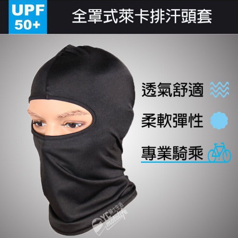 萊卡涼感快乾 安全帽 頭套 頭罩 全罩式排汗頭套 黑色 騎士必備實用部品 自行車也可用 透氣排汗 不悶熱