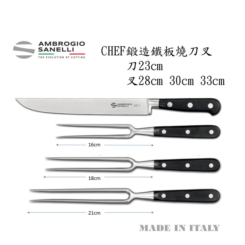 蓋瑞廚物【SANELLI 義大利製 Chef 鍛造 鐵板燒刀叉】鐵板燒叉(直) 肉叉 鐵板燒刀 分肉叉 鐵板燒叉 烤肉叉