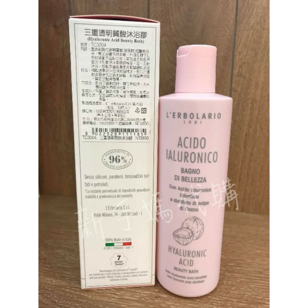 蕾莉歐L'ERBOLARIO 沐浴乳 三重透明質酸沐浴膠250ML 專櫃正貨