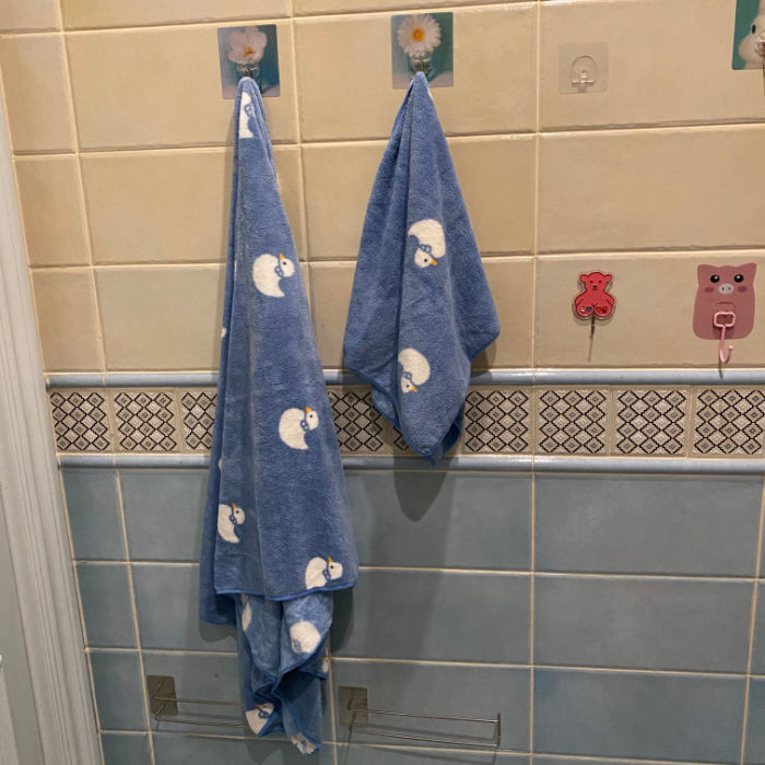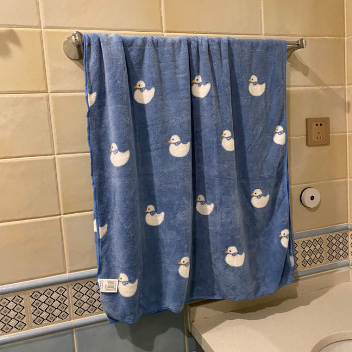 藍色鴨子印花長款浴巾成人宿捨吸水速幹洗澡擦身不掉毛珊瑚絨毛巾 IR0M