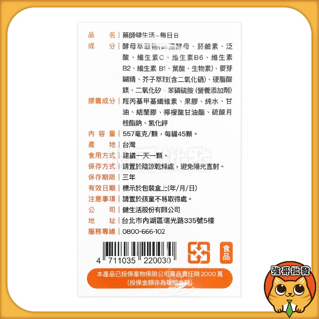 藥師健生活 每日B 45顆/盒 純素 全素 天然酵母B群 高吸收B群 維他命B 綜合B群 台灣製