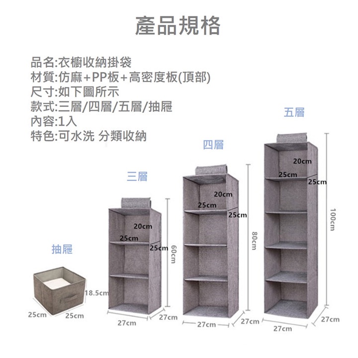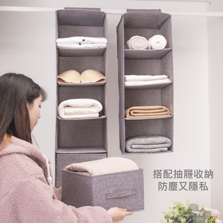 蝦皮隔日到貨【台灣現貨免運 衣櫥收納掛袋】衣櫃衣櫥收納掛袋 棉麻五層抽屜式衣櫃掛袋 掛袋 棉麻掛袋 衣櫃收納掛袋 收納