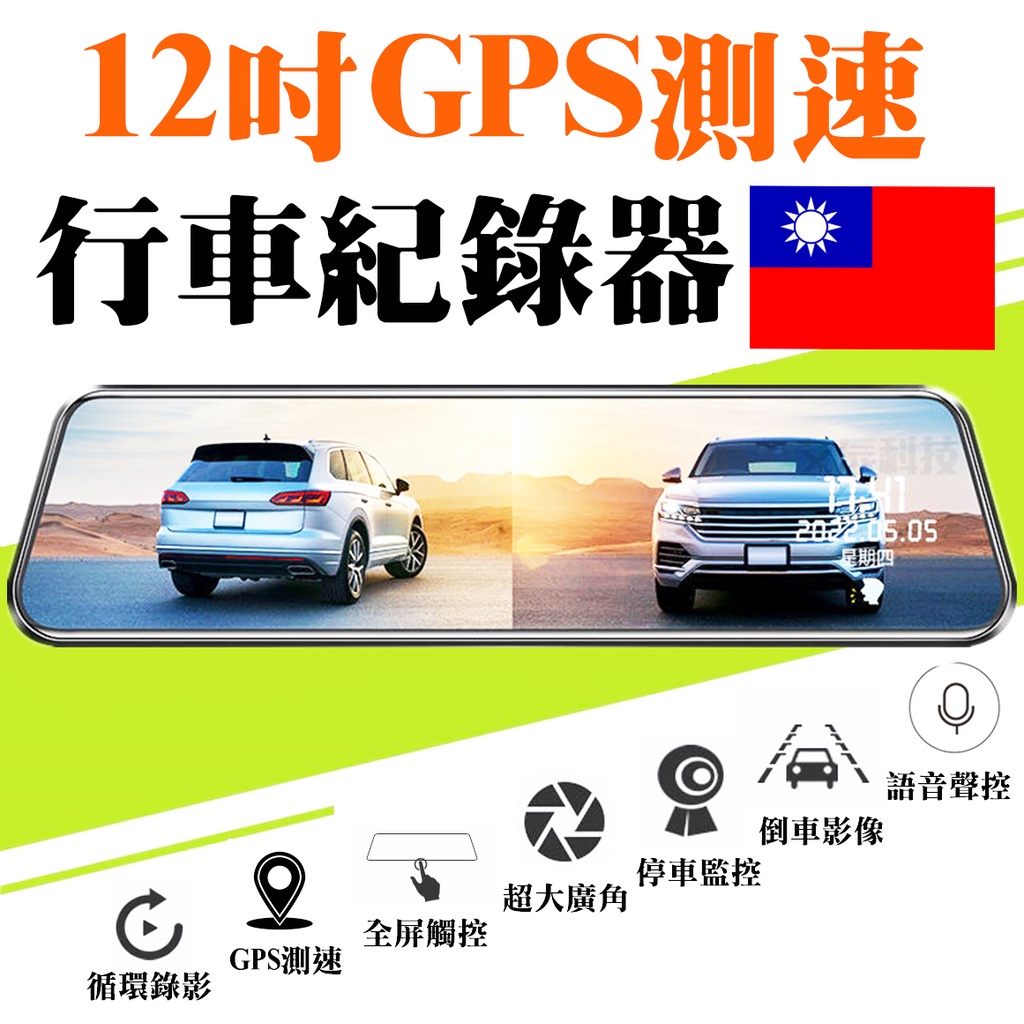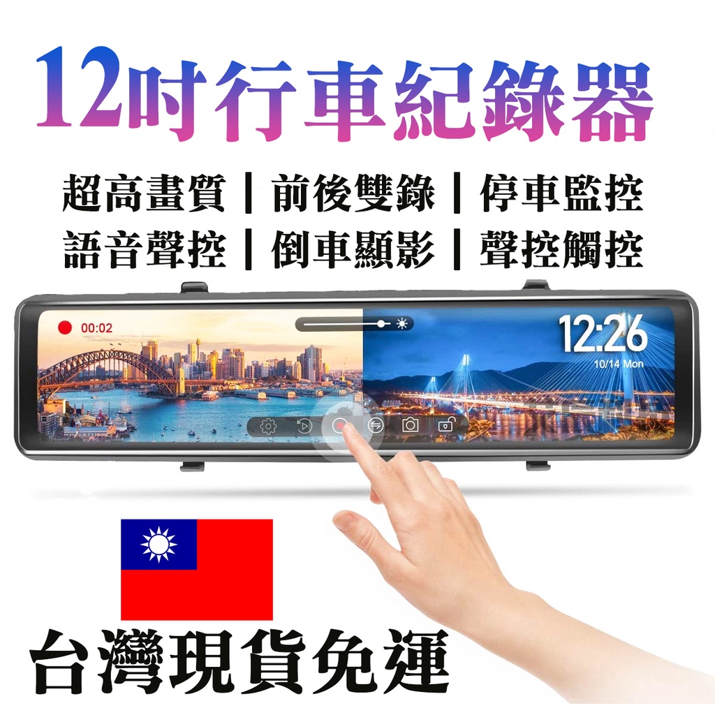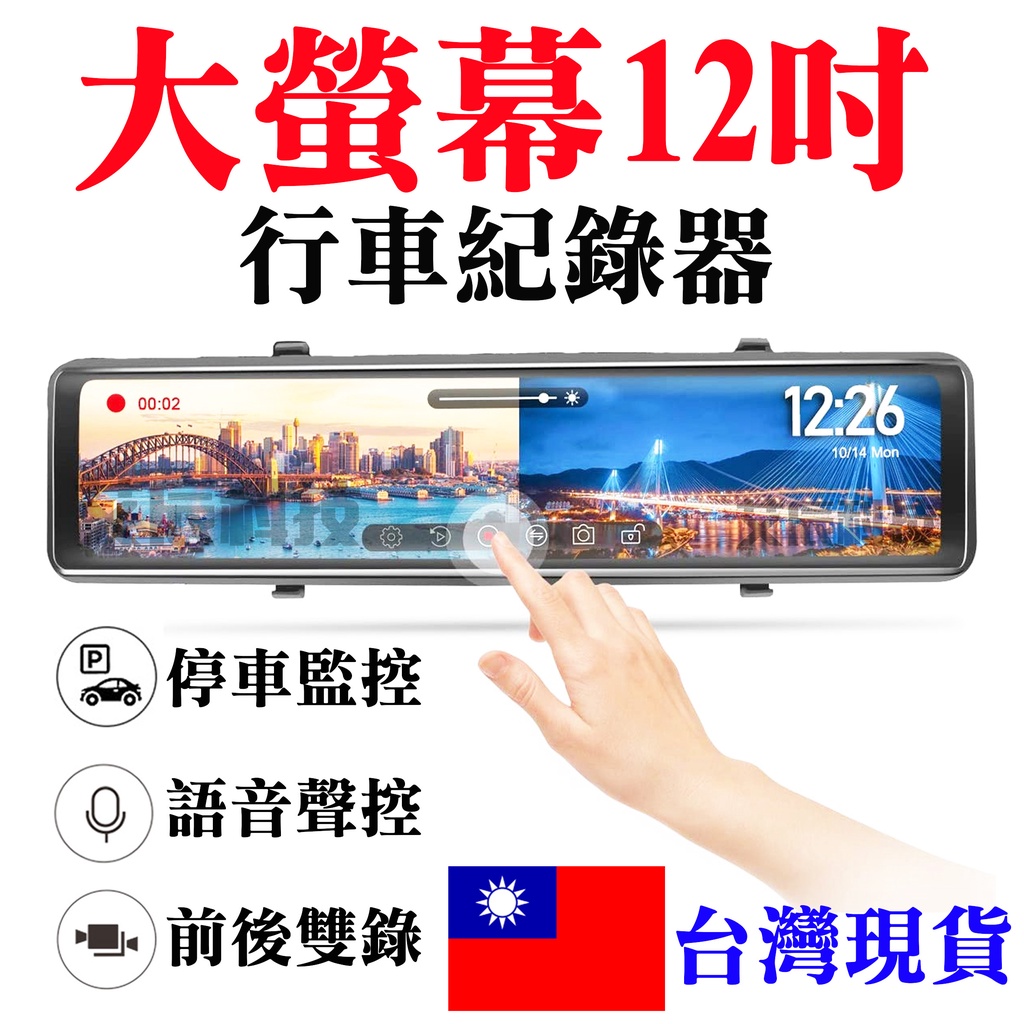行車記錄器【免運】【1440P】12吋 測速 行車 行車紀錄器 語音聲控 前後雙錄 後視鏡 倒車顯影 170度 停車監控