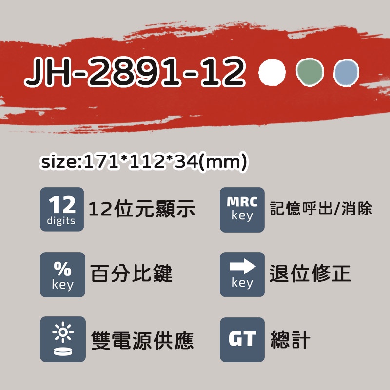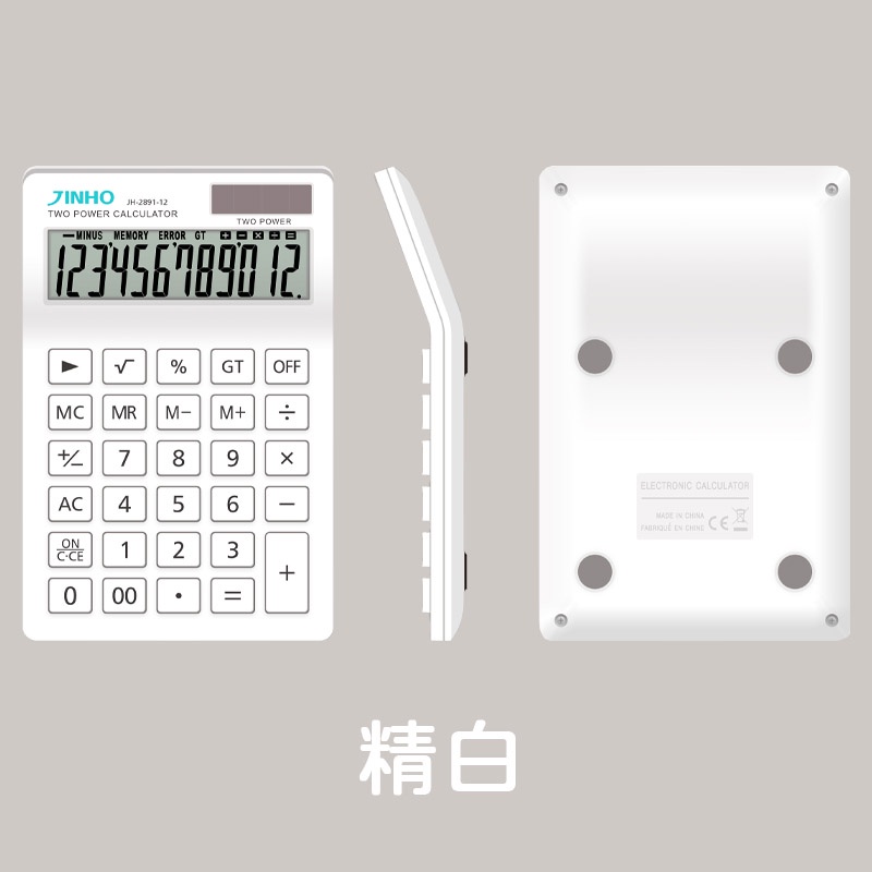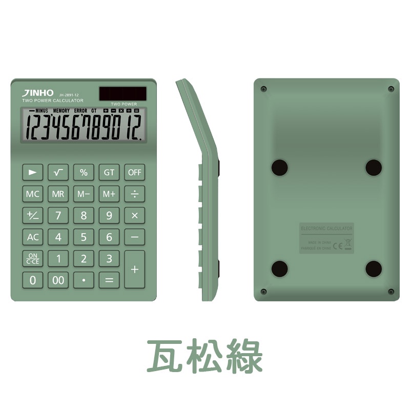 國考專用 台灣品牌JINHO京禾 12位元 太陽能 雙電源 無印風 莫蘭迪 質感文具 事務用品 極簡風格 JH-2891