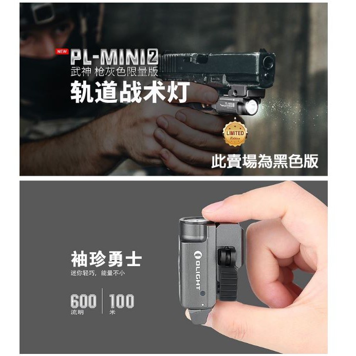 詮國 - Olight PL MINI 2 戰術燈 / 黑色 / 600LM / 1913/GL導軌 / USB充電
