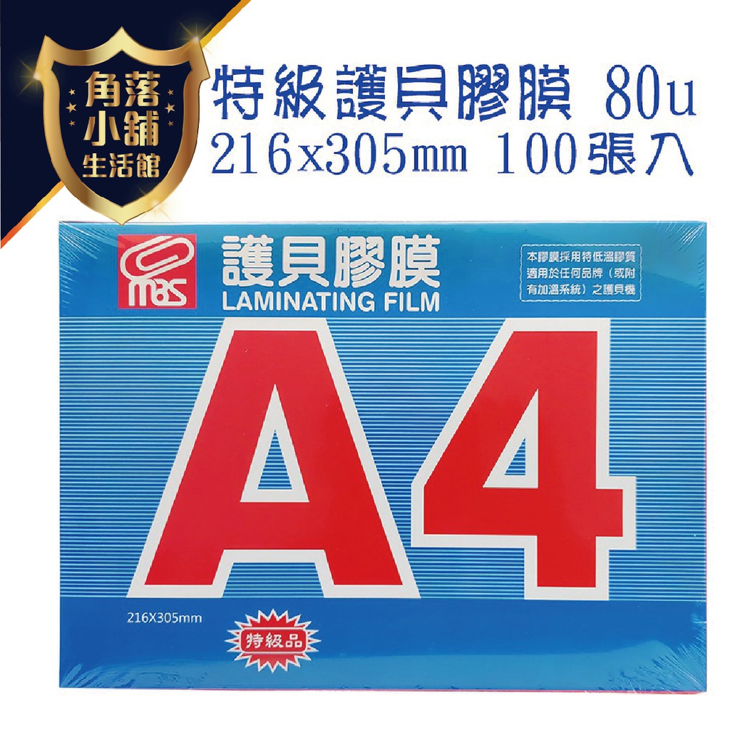 護貝膠膜 萬事捷 MBS A4 80u 特級品(藍盒) 100張入(規格:216x305mm)