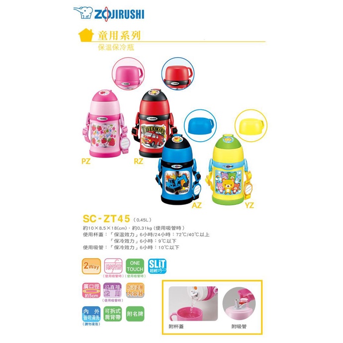 象印 450ml童用2WAY不鏽鋼保溫保冷瓶 (SC-ZT45)