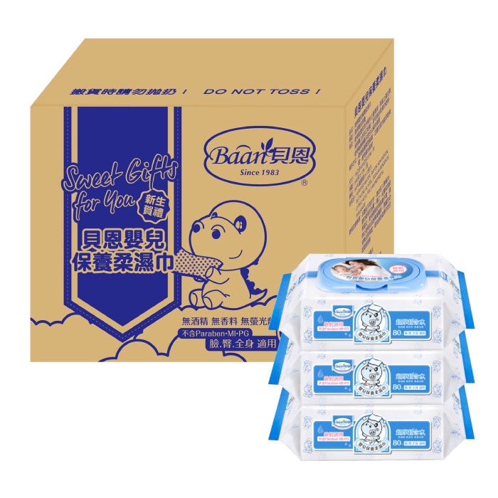 貝恩 嬰兒保養柔濕巾80抽12入(箱購|新生賀禮|彌月)【麗兒采家】
