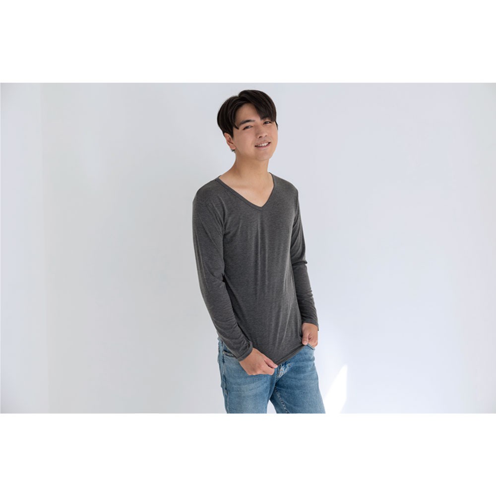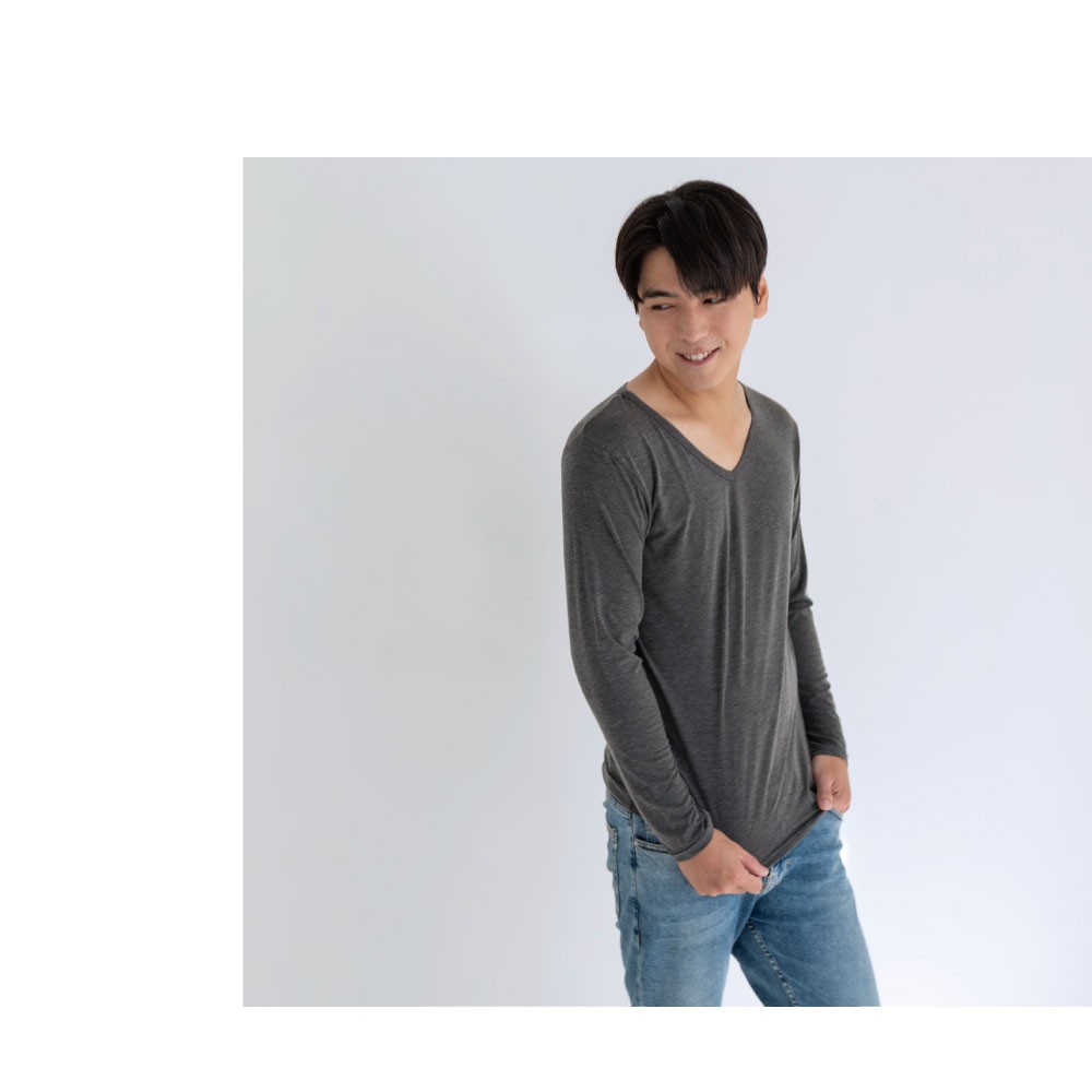 貝柔Tencel機能保暖發熱衣_男V領(麻灰)
