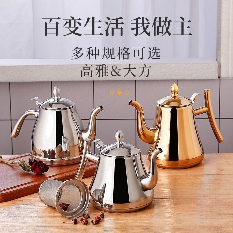 貝貝⭐1.0L/1.5L/2L加厚不鏽鋼茶壺 泡花茶壺 燒水壺 帶濾網茶壺酒店餐廳飯店茶樓家用電磁爐可用 直火茶壺⭐優選