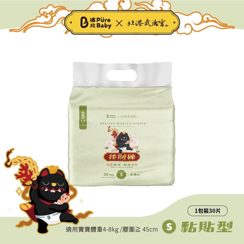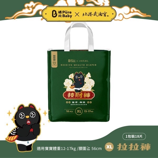 買4贈1包"濕紙巾"【波比 PureBaby】接財褲 植萃抑菌(黏貼型/拉拉褲)/過夜尿布/北港武德宮/天官武財神