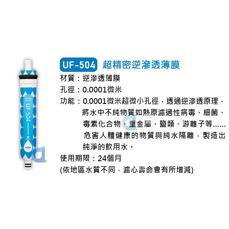 賀眾牌UF-504超精密逆滲透純水機RO薄膜(UF504)大大淨水