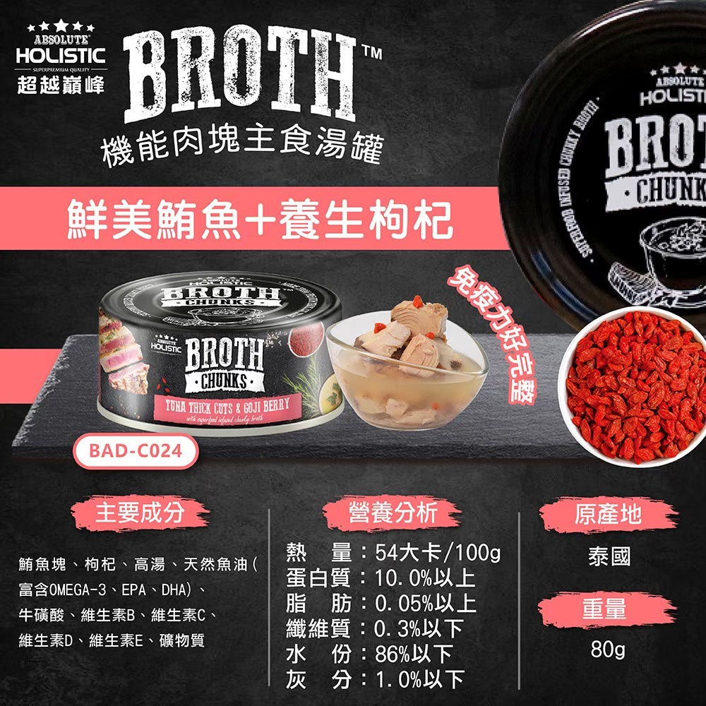 超越巔峰 Absolute Holistic 機能肉塊主食湯罐 主食貓罐 貓罐 湯罐 主食罐 80g 狗罐